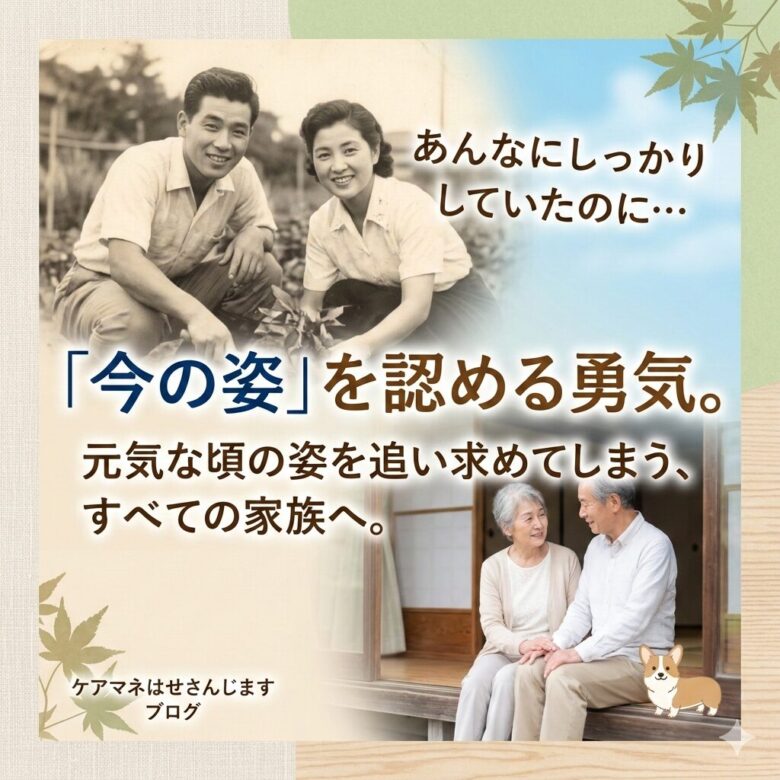 ご家族の心の中には、今も「元気だった頃の凜とした親の姿」が鮮明に残っています。だからこそ、今の衰えを目の当たりにしたとき、無意識に「あの頃の姿」に近づけようと、懸命に医療や介護サービスを組み込もうとされるのです。ご本人もまた「自分はまだ何でもできる」「介護なんて必要ない」と、変化を受け入れられずに過ごしていることもあります。