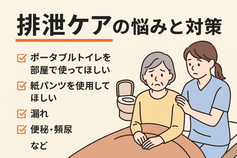 排泄ケアの問題は簡単に片付けられるものではありません。しかし、ひとつひとつ向き合い、ご本人が望んでいる生活を守るために、丁寧な支援が重要になります。